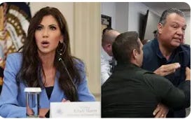 Crucially, the stolen-election myth does not draw its power from claims that Democrats stuffed ballot boxes or manipulated vote totals. It draws its force from a deeper presumption: that Democratic victories are invalid because they rest on the political equality of people who, in the neo-Confederate worldview, are not entitled to the same standing in the polity as white Christians. The 2020 election was a fraud not because the votes were miscounted but because of whose votes were allowed to count, meaning that elected Democrats are not political opponents but the “enemy within” — a subversive threat to the “real” America. Kristi Noem made this logic explicit when she described Los Angeles as a city in need of “liberation” from its elected leaders—leaders portrayed not merely as misguided, but as alien usurpers imposing illegitimate values. Trump made these intentions known throughout the campaign if anyone cared to take him seriously.5